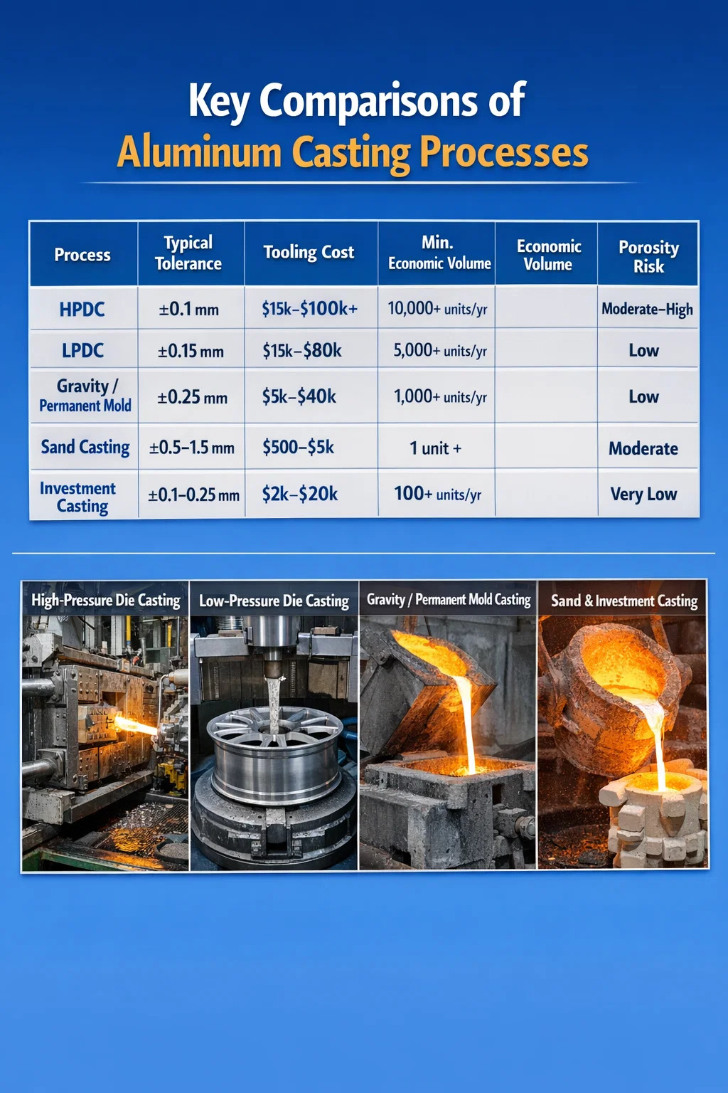 | LPDC | ±0,15 mm | 15 000–80 000 dolarów | 5000 jednostek/rok | Niski |