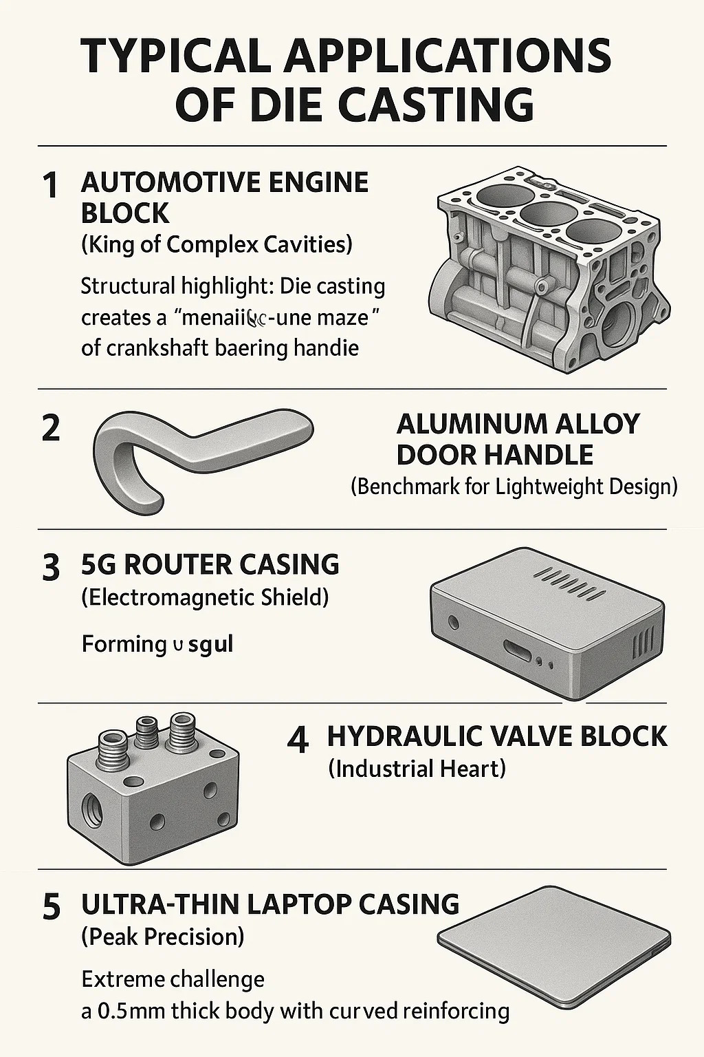 Esencja rzemiosła: stop cynku topi się w „metaliczną zupę”, a następnie wtryskuje pod wysokim ciśnieniem do wyrzeźbionej stalowej formy, tworząc w 3 sekundy zakrzywiony uchwyt o fakturze przypominającej odcisk palca. Waży o 60% mniej niż stal nierdzewna.